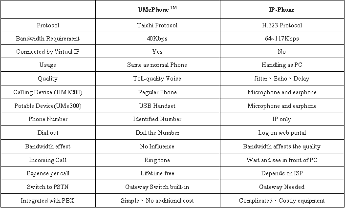 世界中どこへ UMe Phone 同士なら電話代がかかりません。 ADSL プロパイダーを選びません。 USB接続で簡単セットアップ。 Taichi-network システムの採用 コントローラ内蔵 64 〜 117 K bps 9桁の識別番号 サポートOS Windows 98 SE/ME/2000, Windows XP システム:Taichi-Network Communication System ショートネーム:Taichi-Network 使用OS:UnME 商品名:UMePhone 詳細:Taichi-Network Telephony Devices |